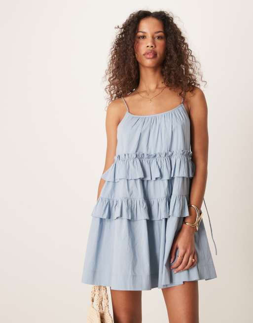 ASOS DESIGN – Blekblå, panelsydd miniklänning med volang