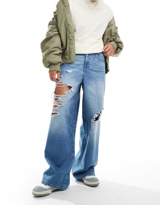 ASOS DESIGN – Blekblå, superbaggy jeans med stora revor
