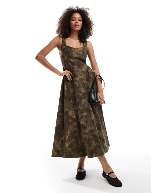 ASOS DESIGN – Blekbrun och lång förklädesklänning i läderimitation