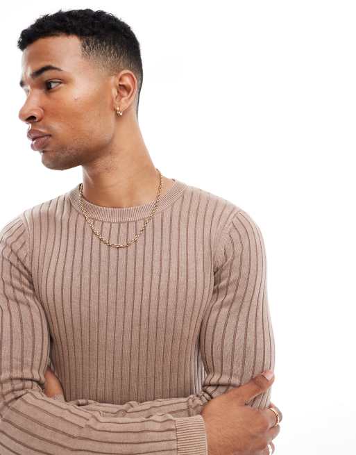 ASOS DESIGN – Blekbrun ribbstickad tröja i muscle fit