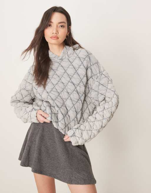 ASOS DESIGN – Blekgrå, quiltad huvtröja