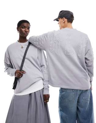 ASOS DESIGN – Blekgrå sweatshirt i oversize med stort broderi
