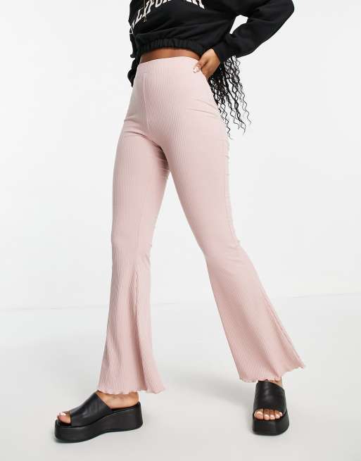ASOS DESIGN – Blekrosa ribbade byxor i utsvängd design med rullfåll, del av set