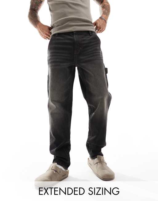 ASOS DESIGN – Bleksvarta, avsmalnande jeans med snickardetaljer