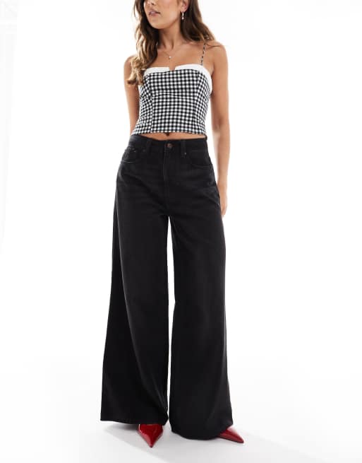 ASOS DESIGN – Bleksvarta jeans med vida ben