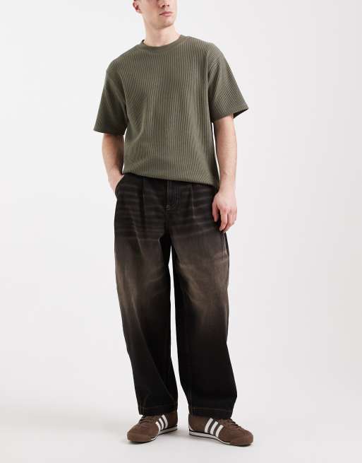 ASOS DESIGN – Bleksvarta och gultonade jeans i oversize med avsmalnande passform