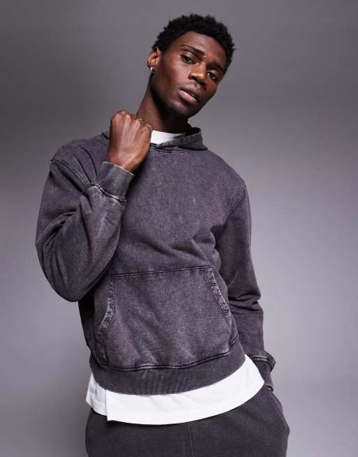 ASOS DESIGN – Blekt mörkgrå och avslappnad huvtröja med boxig passform