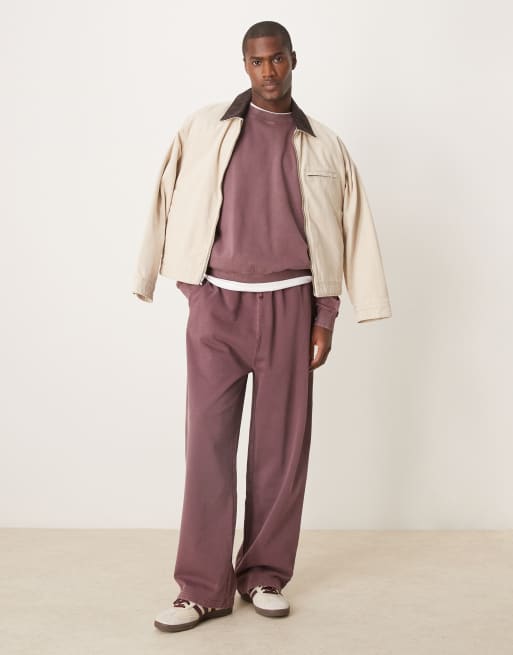 ASOS DESIGN – Blekt vinröda mjukisbyxor med vida ben