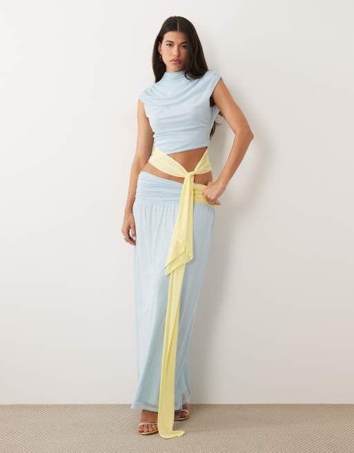 ASOS DESIGN – Blockfärgat set i mesh med topp och kjol