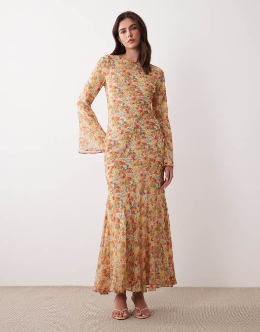 ASOS DESIGN – Blommig maxiklänning med utsvängda ärmar