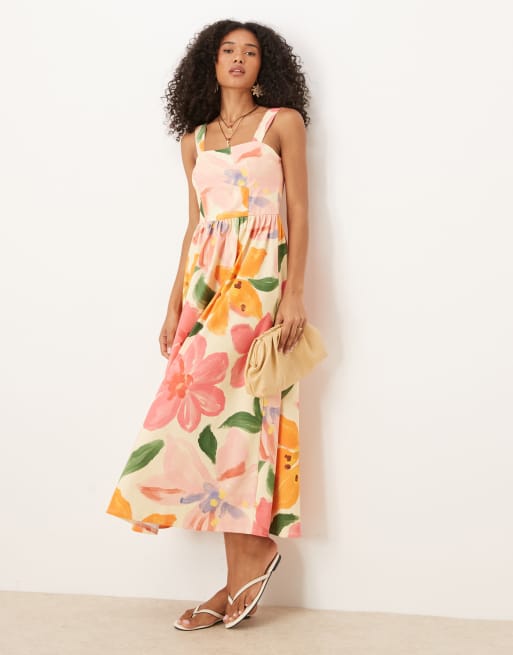 ASOS DESIGN – Blommig midiklänning med fyrkantig halsringning