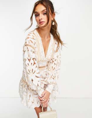 ASOS DESIGN – Blommig miniklänning med peplum-fåll och kontrastfärgade detaljer av spets