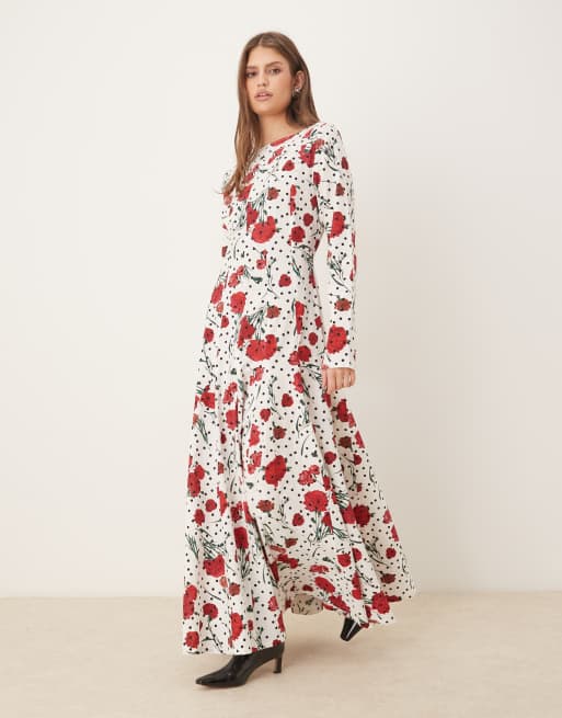 ASOS DESIGN – Blommig och prickig maxiklänning med rak halsringning och vid kjol