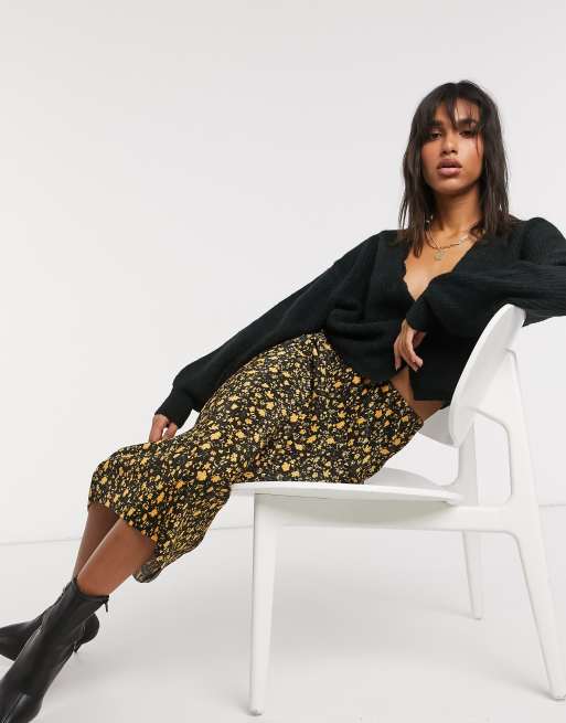 ASOS DESIGN – Blommig plisserad maxikjol i ockra