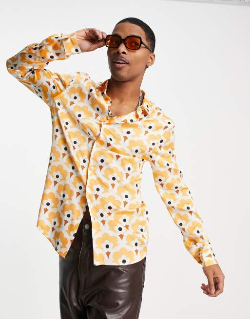 ASOS DESIGN – Blommig satinskjorta i 70-talsstil