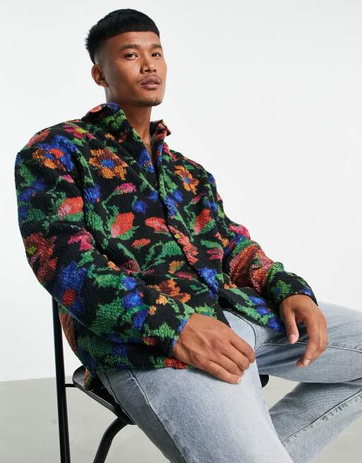 ASOS DESIGN – Blommig skjorta i teddy oversize och 90-talsstil