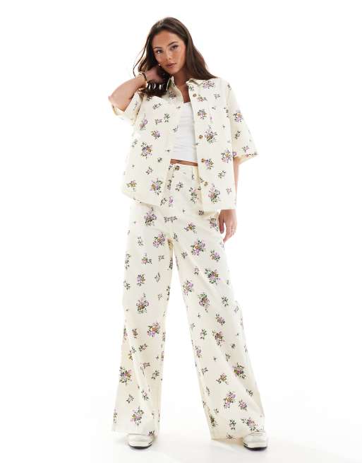 ASOS DESIGN – Blommiga byxor med vida ben och hög midja, del av set