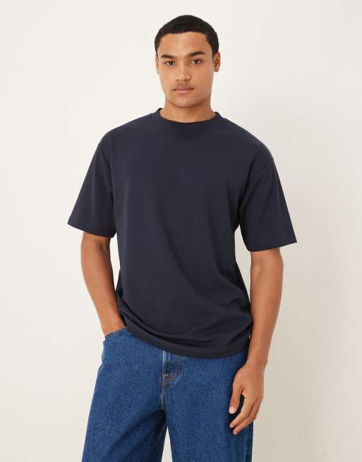 ASOS DESIGN – BreatheMAX™ – Marinblå, kraftig t-shirt i bomullsmix med avslappnad passform