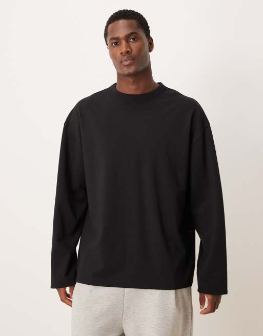 ASOS DESIGN – breatheMAX™ – Svart, kraftig, oversize t-shirt i bomullsmix med långa ärmar