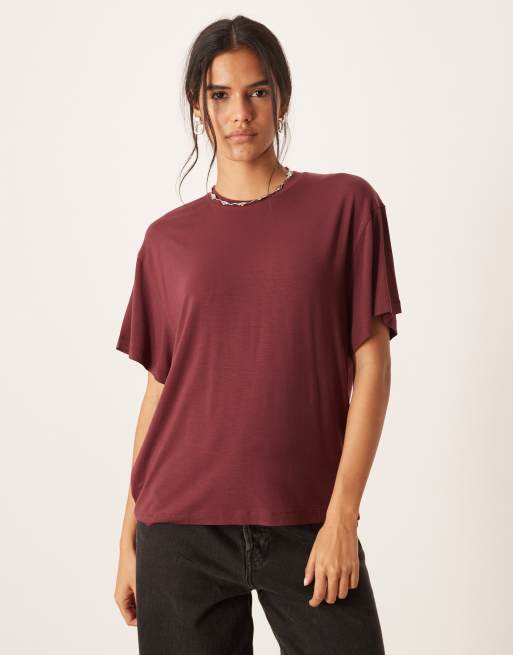 ASOS DESIGN – breatheMAX™ – Vinröd, draperad t-shirt i lyocell