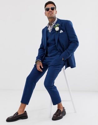 ASOS DESIGN – Bröllop – Blå kostym i med dubbla slag och smal passform i ullmix och twill