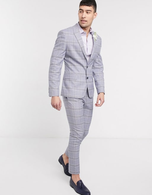 ASOS DESIGN – Bröllop – Blå, rutig linnekostym i superskinny fit
