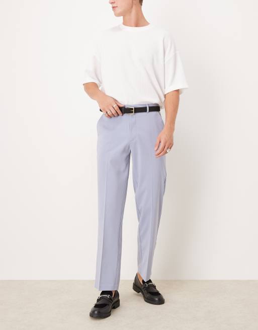 ASOS DESIGN – Bröllop – Dimblå finbyxor med vida ben