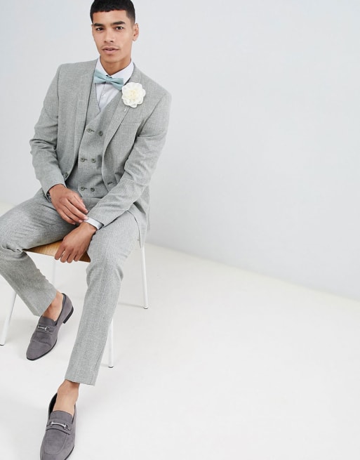 ASOS DESIGN – Bröllop – Kakifärgad kostym med crosshatch-mönster i smal passform