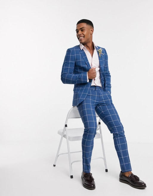 ASOS DESIGN – Bröllop – Ljusblå, rutig kostym i superskinny fit