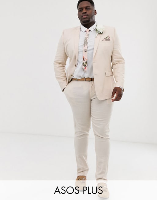 ASOS DESIGN – Bröllop – Plus – Sandfärgad linnekostym med supersmal passform