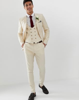 ASOS DESIGN – Bröllop – Sandfärgad kostym i linne med extra smal passform
