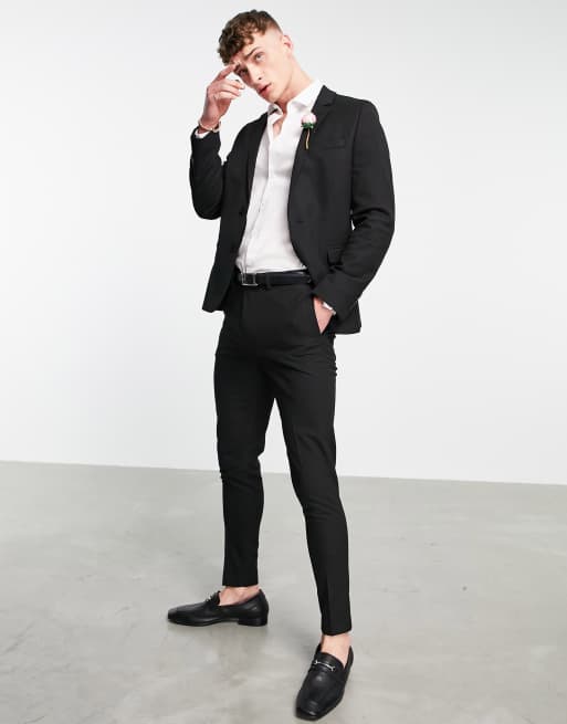 ASOS DESIGN – Bröllop – Svart kavaj med mikrostruktur och extra skinny passform, del av kostym