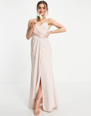 ASOS DESIGN – Brudtärna – Ljusrosa, draperande maxiklänning med omlott i midjan