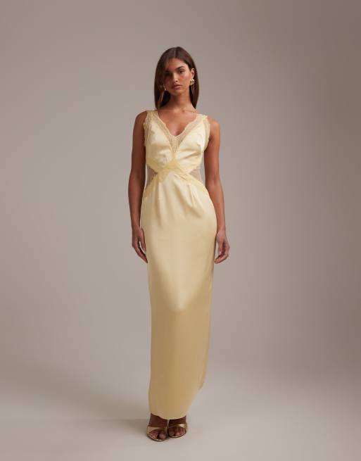 ASOS DESIGN – Brudtärnor – Blekgul maxiklänning med spetsapplikationer