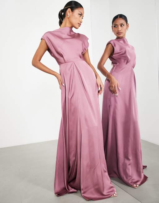 ASOS DESIGN – Brudtärnor – Lila maxiklänning i satin med draperad ringning och utskurna detaljer