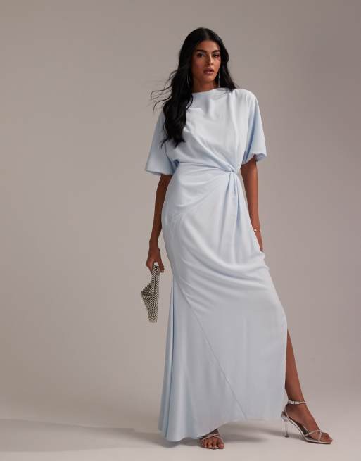 ASOS DESIGN – Brudtärnor – Ljusblå maxiklänning i crepe med liten drapering och rak halsringning