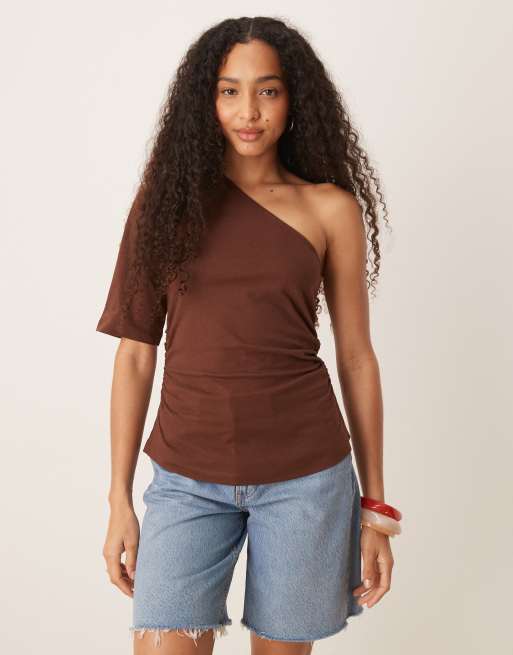 ASOS DESIGN – Brun, asymmetrisk t-shirt med indragen midja