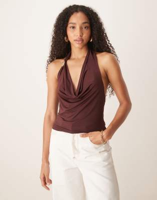 ASOS DESIGN – Brun, åtsmitande topp med draperad ringning och guldfärgad detalj