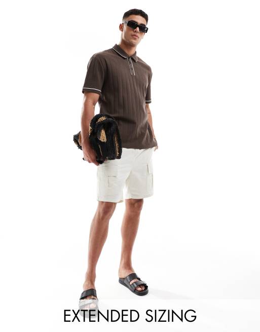 ASOS DESIGN – Brun, avslappnad, ribbad pikétröja med vita kantränder