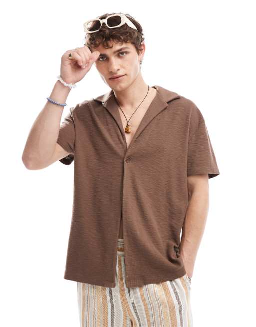 ASOS DESIGN – Brun, avslappnad skjorta med en knapp och resortkrage