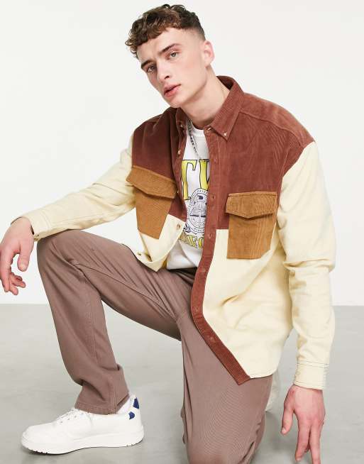 ASOS DESIGN – Brun, blockfärgad skjorta i oversize av manchester