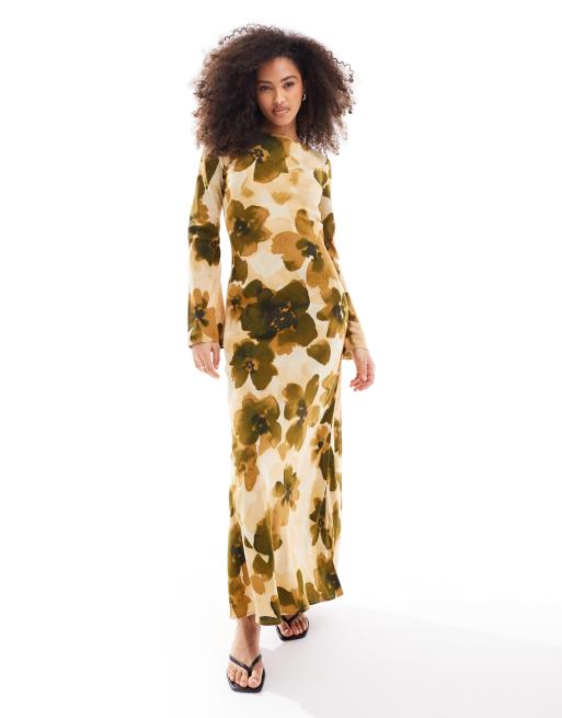 ASOS DESIGN – Brun, blommig maxiklänning i viskos med båtringning