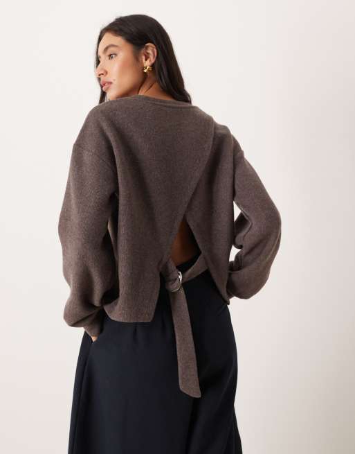 ASOS DESIGN – Brun, borstad, supermjuk topp med rynkning och D-ring