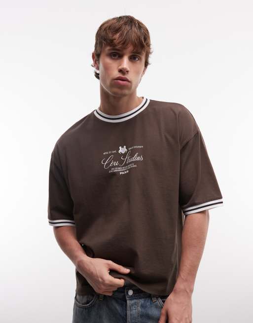 ASOS DESIGN – Brun, boxig t-shirt i oversize med texttryck.