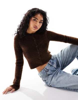 ASOS DESIGN – Brun figursydd kofta i fluffigt garn