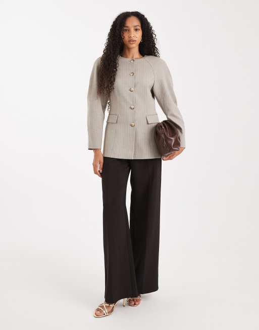 ASOS DESIGN – Brun, fiskbensmönstrad kavaj i cocoon-modell med höga slag och indragen midja