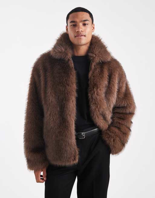 ASOS DESIGN – Brun Harrington-jacka i fuskpäls
