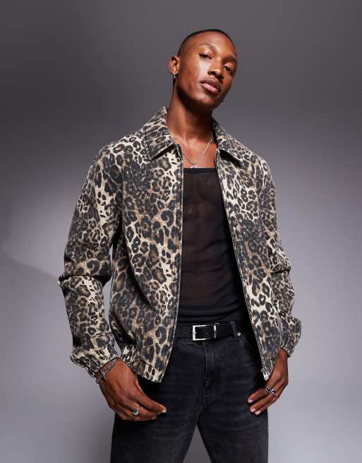 ASOS DESIGN – Brun harrington-jacka med leopardmönster