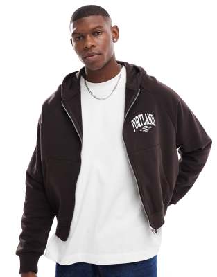 ASOS DESIGN – Brun huvtröja med boxig passform, tryck på bröstet och dragkedja