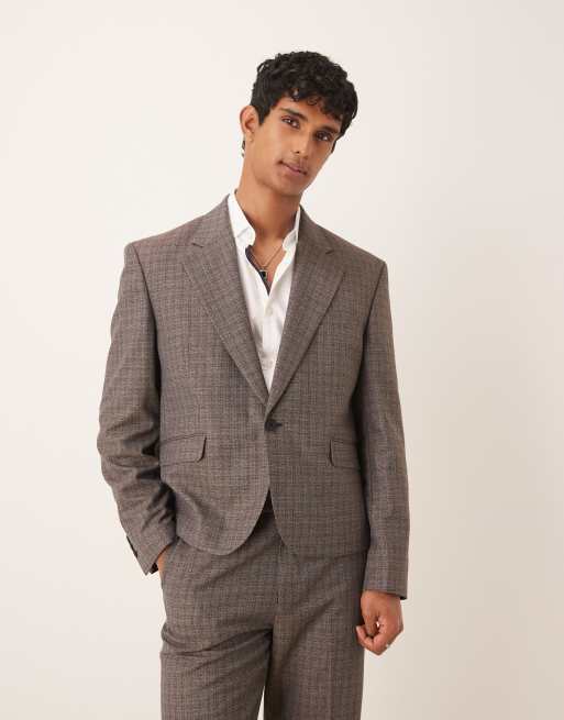 ASOS DESIGN – Brun, kort kavaj med smårutig textur och boxig passform, del av kostym